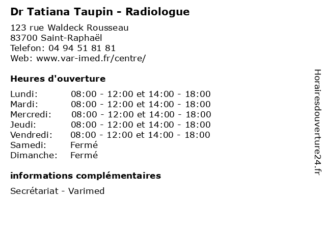 1 Dr Tatiana Taupin - Radiologue (Distance: 1,78 km) 147 Rue Jean Giono, 83600 Fréjus consultation, docteur, dr, med, médecin, médecine, radiologue, tatiana, taupin, traitement 3 Beauthy'R by Tatiana (Distance: 27,44 km) 63 Avenue de la Libération, 06130 Grasse beauthy'r, beauté, by, coiffure, coiffures, coloristes, tatiana 4 Dr Tatiana Taupin - Radiologue (Distance: 27,59 km) - Avenue des Vignerons, 83300 Draguignan consultation, docteur, dr, med, médecin, médecine, radiologue, tatiana, taupin, traitement 6 Dr Tatiana Arias - Gynécologue médical et obstétrique (Distance: 50,29 km) 26 Boulevard Victor Hugo, 06000 Nice arias, bebe, dr, et, gynecologie, gynécologue, maternite, médical, obstetrique, obstétrique, tatiana |