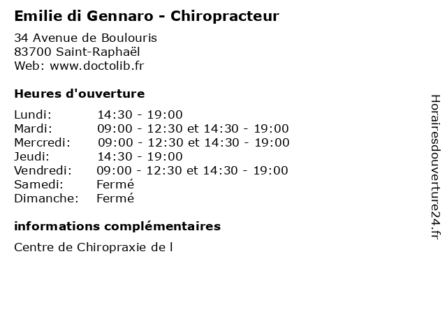 | Mercredi | 09:00-12:30 et 14:30-19:00 |