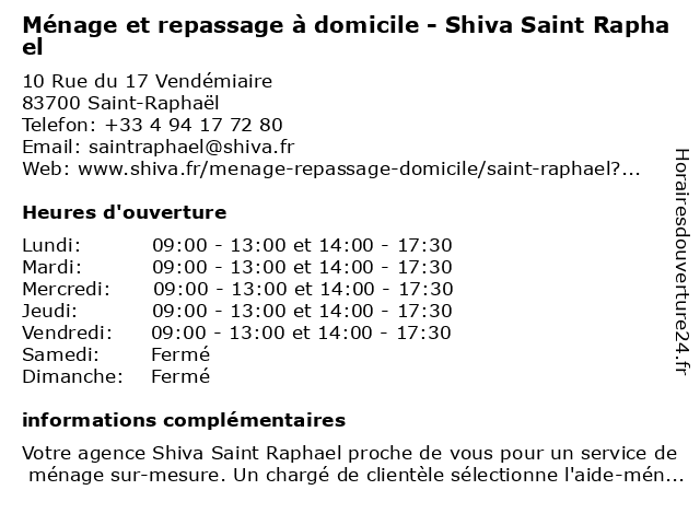 | Mercredi | 09:00-13:00 et 14:00-17:30 |