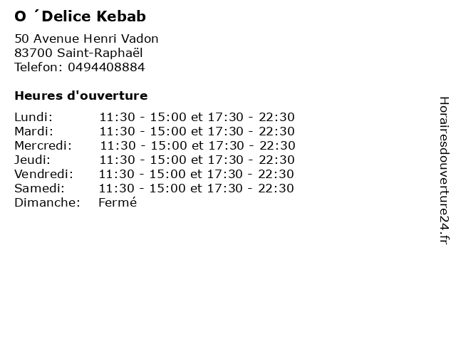 | Vendredi | 11:30-15:00 et 17:30-22:30 |