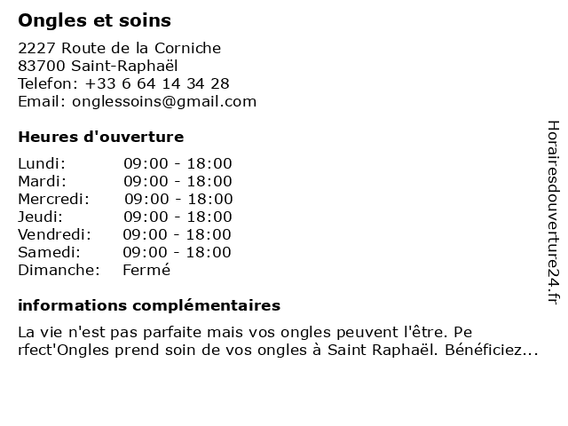 1 Les Ongles by Maryne (Distance: 3,63 km) Zone du cerceron, 83700 Saint-Raphaël beauté, by, les, manucure, maryne, onglerie, ongles, épilation 2 Ongles J'adore Prothésiste Ongulaire Var 83 (Distance: 8,24 km) 2861 Rue Des Combattants D’Afrique Du Nord, 83600 Fréjus 83, beauté, construction d'ongles artificiels, j'adore, manucure, ongles, ongulaire, prothésiste, var 3 Moi Je - Bar à ongles (Distance: 8,99 km) 148 Avenue Saint Albert, 83480 Puget sur Argens bar, beauté, boutique, je, moi, ongles, salon, soins 4 LUVIA NAILS - Onglerie, Bar à ongles (Distance: 17,92 km) 312b Boulevard Des Écureuils, 06210 Mandelieu bar, luvia, nails, onglerie, ongles 5 Ongles Passion (Distance: 18,02 km) 809 Boulevard des Ecureuils, 06210 Mandelieu la Napoule cafe, chaussures, enfants, homme, lingerie, mode femme, ongles, passion, restaurant, service 6 Yves Rocher (Distance: 3,34 km) 20 Rue de la Liberté, 83700 Saint-Raphaël coffret cadeau femme, crème hydratante visage, démaquillant, fond de teint, gel douche, gommage, maquillage, mascara, massage, monoï, parfum, rocher, rouge à lèvres, shampoing, shampoing sans sulfate, soin corps, soin visage, vernis à ongles, yves, épilation, épilation maillot, épilation sourcils |