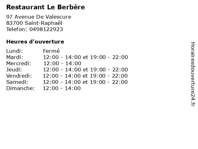 | Lundi | Fermé |