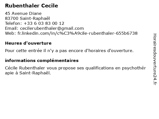 1 Dr Cecile Arlotto - Médecin nutritionniste - secrétariat (Distance: 4,01 km) 226 Chemin de la Lauve, 83700 Saint-Raphaël arlotto, cecile, consultation, docteur, dr, med, médecin, médecine, nutritionniste, secrétariat, traitement 2 Calvet-laurent Cecile-nicolas (Distance: 14,23 km) 71 Boulevard des Écureuils, 06210 Mandelieu-la-Napoule calvet, cecile, laurent, nicolas 3 Chanal Courel Laure Sylviane Cecile (Distance: 19,96 km) Chez Laure, 06530 Saint Cezaire Sur Siagne cecile, chanal, courel, laure, restaurants, sylviane 4 Marie-Cécile Diebold - Psychologue (Distance: 5,32 km) 240 Avenue de Saint-Lambert, 83600 Fréjus cecile, cécile, diebold, docteur, marie, médecin, psychologie, psychologue 5 Cécile Gossa - Sage-femme (Distance: 5,32 km) 240 avenue de Saint-Lambert, 83608 Frejus cecile, consultation, cécile, docteur, dr, femme, gossa, med, médecin, sage, traitement 6 Dr Cécile Chassaignon - Médecin généraliste (Distance: 5,32 km) 240 avenue de Saint-Lambert, 83608 Frejus cecile, chassaignon, consultation, cécile, docteur, dr, généraliste, med, médecin, traitement |