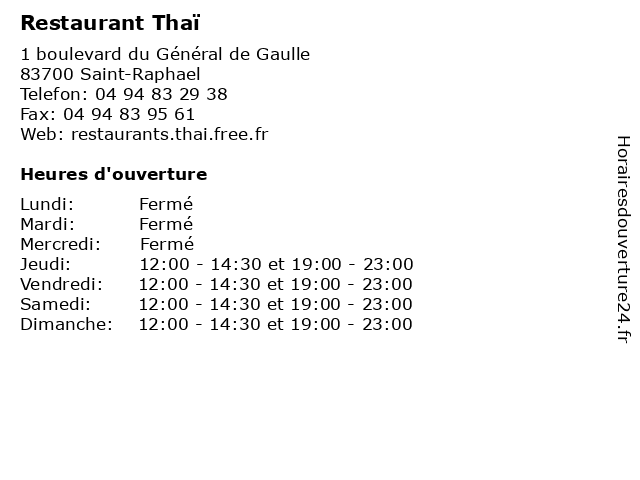 1 Maï Thaï (Distance: 0,45 km) 15 rue de la République, 83700 Saint-Raphaël asiatique, maï, restaurant, thaï, thaïlandais, traiteur 2 Sabaidee - Thaï Massage (Distance: 1,58 km) 264 Avenue de Port Fréjus, 83600 Fréjus beauté, institut, massage, relaxation, sabaidee, salon, soins, tai, thaï 3 Restaurant That Thaï (Distance: 19,48 km) 763 Avenue De Cannes, 06210 Mandelieu-la-Napoule chinois, restaurant, restaurants, restauration, thai, that, thaï, wok 4 Pagoda Wok (Distance: 22,39 km) 45 Avenue Francis Tonner, 06150 Cannes asiatique, buffet, grill, nem, pagoda, ravioli, restaurant, riz, wok 5 Myam Yam (Distance: 22,39 km) 145 Avenue Francis Tonner, 06150 Cannes-la-Bocca asiatique, citronnelle, myam, restaurants, riz, sautés, yam 6 Yoda Sushi (Distance: 25,48 km) 11 Boulevard de Lorraine, 06400 Cannes cannes, crus, japonais, plats asiatiques, poissons, riz, sushi, viande, yoda |
