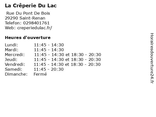 | Mercredi | 11:45-14:30 et 18:30-20:30 |