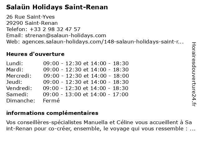 | Lundi | 09:00-12:30 et 14:00-18:30 |