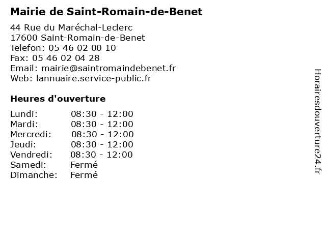 Termes de recherche pour Mairie de Saint-Romain-de-Benet:de, saint, romain, administration, mairie, assoc public, benet |