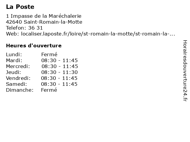 2 La Poste (Distance: 6,00 km) - Rue Jean de la Fontaine, 42300 Mably agence, assurance, banque, banque postale, bureau de poste, chronopost, colis, courrier, dps, expéditions internationales, la, point, postale, poste, relais, timbres, téléphonie, ups, western union 3 La Poste (Distance: 6,99 km) 10 Grande Rue, 42820 Ambierle agence postale, courrier postal, expédition internationale, la, poste 4 La Poste (Distance: 7,04 km) 18 Rue Jean-Baptiste Chambonnière, 42370 Saint-André-d'Apchon agence, assurance, banque, colis, courrier, envois, expéditions, la, point, postale, poste, relais 5 La Poste (Distance: 9,02 km) 182 Grande Rue, 42370 Saint-Alban-les-Eaux agence, assurance, banque, colis, courrier, envois, expéditions, la, point, postale, poste, relais 6 La Poste (Distance: 10,47 km) 19 route de Roanne, 42720 Vougy agence, assurance, banque, colis, courrier, envois, expéditions, la, point, postale, poste, relais |