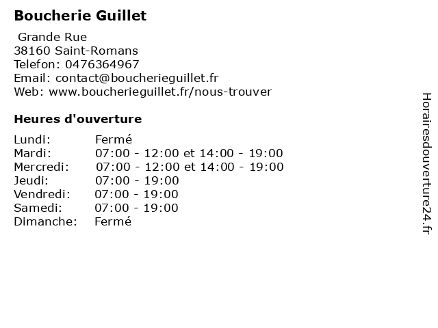 | Lundi | Fermé |