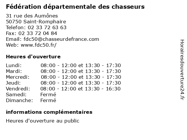 | Lundi | 08:00-12:00 et 13:30-17:30 |