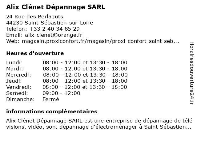 | Lundi | 08:00-12:00 et 13:30-18:00 |
