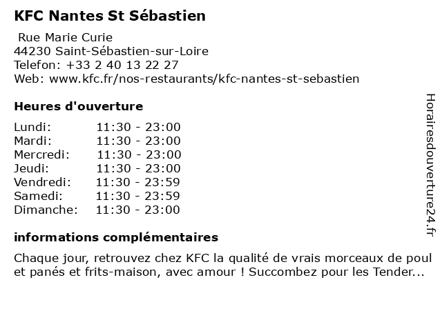 Termes de recherche pour KFC Nantes St Sébastien:restaurant, st, nantes, sebastien, kfc, fastfood, frites, burgers et buckets, poulet et bucket |