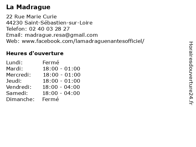 | Samedi | 18:00-04:00 |