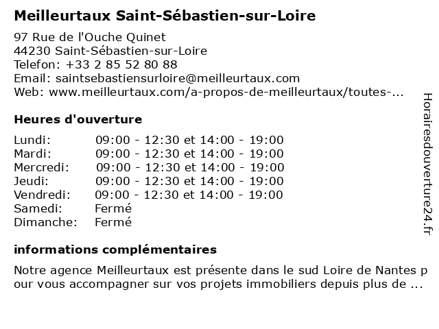 1 MEILLEURTAUX Jean-Yves TOUL (Distance: 1,97 km) 107 Route de Clisson, 44230 Saint-Sébastien-sur-Loire jean, meilleurtaux, toul, yves 2 Meilleurtaux.com (Distance: 3,88 km) 48 Rue Aristide Briand, 44400 Rezé credit, immobilier, meilleurtaux.com, services 3 Meilleurtaux.com (Distance: 6,34 km) 36 Place Viarme, 44000 Nantes credit, immobilier, meilleurtaux.com, services 4 Meilleurtaux.com (Distance: 11,64 km) 38 Rue Jules Verne, 44700 Orvault assurances, credit, financement, immobilier, meilleurtaux.com, placement et epargne, services 5 Meilleurtaux.com (Distance: 11,97 km) 11bis rue André Maurois, 44470 Carquefou assurances, credit, financement, immobilier, meilleurtaux.com, placement et epargne, services 6 Meilleurtaux.com (Distance: 47,91 km) 10 Rue du Général Leclerc, 85300 Challans credit, immobilier, meilleurtaux.com, services |