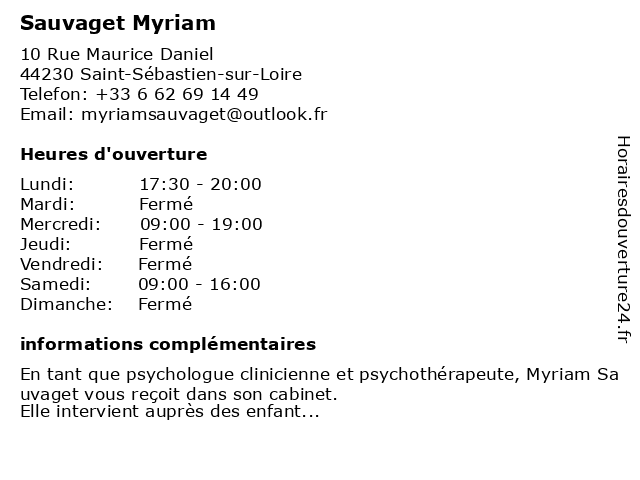 1 Myriam Neiva Palhares (Distance: 3,50 km) 182 Route de Sainte-Luce, 44300 Nantes myriam, neiva, palhares 2 Dr Anne Sauvaget - Psychiatre (Distance: 3,71 km) 1 Place Alexis Ricordeau, 44093 Nantes anne, consultation, docteur, dr, med, médecin, psychiatre, sauvaget, traitement 3 Dr Myriam Van Tricht - Médecin généraliste (Distance: 3,71 km) 1 Place Alexis Ricordeau, 44093 Nantes consultation, docteur, dr, généraliste, med, myriam, médecin, traitement, tricht, van 4 Dr Myriam Cary-ten Have Dallinga - Dermatologue (Distance: 8,14 km) 3 Rue des Merisiers, 44800 Saint-Herblain boutons, cary, dallinga, dermatologue, docteur, dr, have, liason, myriam, ten, venerologue 5 Myriam Buraud - Psychologue (Distance: 10,00 km) 34 Rue Jules Verne, 44700 Orvault buraud, folie, myriam, psychiatre, psychiatrie, psychiatrique, psychologue 6 AXA Assurance et Banque Eirl Sauvaget Emmanuel (Distance: 10,17 km) 11 Rue du Marquis de Maubreuil, 44470 Carquefou assurance, assurance appartement, assurance auto, assurance entreprise, assurance epargne, assurance habitation, assurance maison, assurance professionnelle, assurance santé, assurance voiture, axa, banque, eirl, emmanuel, et, sauvaget |