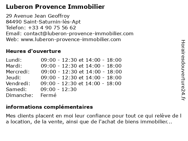 | Lundi | 09:00-12:30 et 14:00-18:00 |