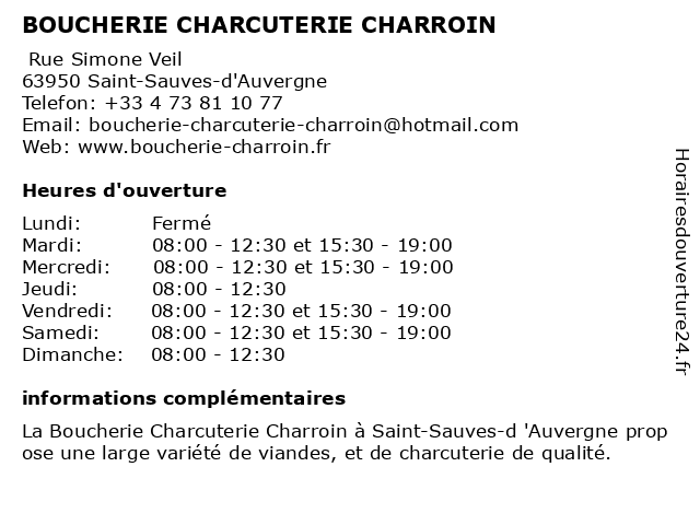 Termes de recherche pour BOUCHERIE CHARCUTERIE CHARROIN:boucherie, charcuterie, poisson, plats cuisinés, viande, charroin, saucisson, fait maison, viande locale, jambon d'auvergne, jambon de pays |