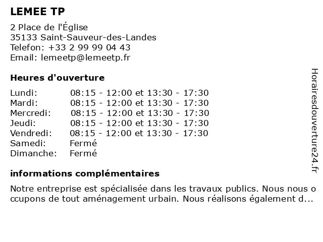 | Lundi | 08:15-12:00 et 13:30-17:30 |