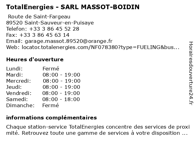 Termes de recherche pour TotalEnergies - SARL MASSOT-BOIDIN:sarl, total, boidin, gas station, station service, massot, tankstelle, totalenergies |