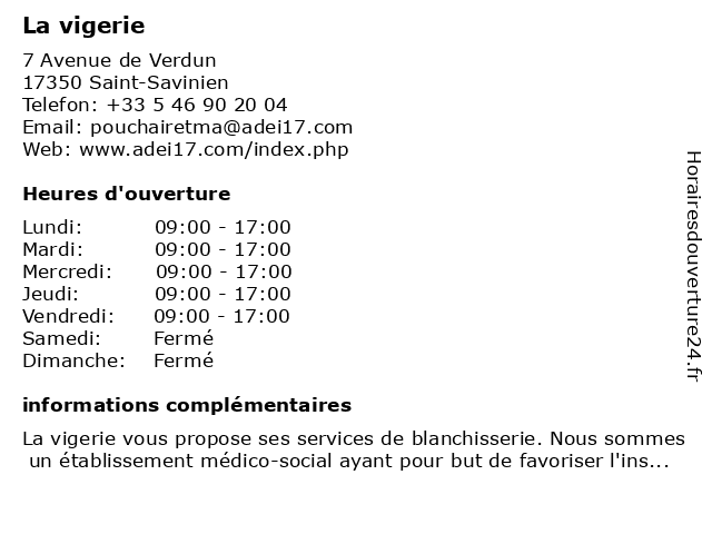 1 La Vigerie (Distance: 0,25 km) Route de Saint-Jean d'Angély, 17350 Saint-Savinien la, vigerie