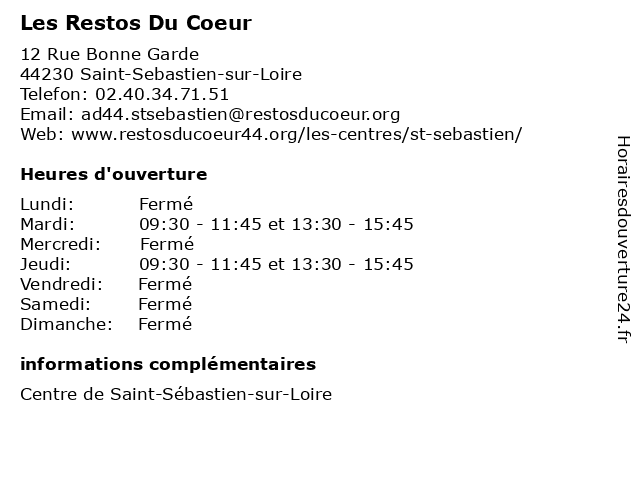 1 Les Restos Du Coeur (Distance: 2,81 km) 7 Rue des Stocks, 44000 Nantes aide, coeur, dons, du, les, resto, restos, solidarité, vente 2 Les Restos Du Coeur (Distance: 6,64 km) 3 rue du Benelux, 44000 Nantes aide, coeur, dons, du, les, resto, restos, solidarité, vente 3 Les Restos Du Coeur (Distance: 9,00 km) 12 Rue de Solay, 44700 Orvault aide, coeur, dons, du, les, resto, restos, solidarité, vente 4 Les Restos Du Coeur (Distance: 9,20 km) 4 Rue Gustave Eiffel, 44800 Saint Herblain aide, coeur, dons, du, les, resto, restos, solidarité, vente 5 Les Restos Du Coeur (Distance: 11,31 km) 8-10 rue de la Hautière, 44240 La Chapelle-sur-Erdre aide, coeur, dons, du, les, resto, restos, solidarité, vente 6 Les Restos Du Coeur (Distance: 14,71 km) 4 Boulevard Martyrs de la Résistance, 44220 Couëron aide, coeur, dons, du, les, resto, restos, solidarité, vente |