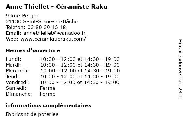 | Jeudi | 10:00-12:00 et 14:30-19:00 |