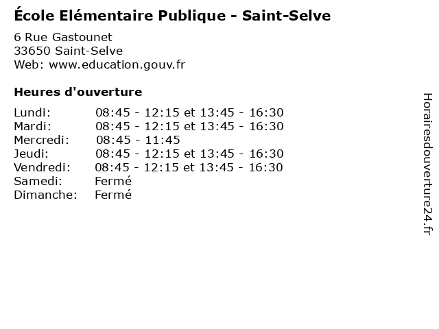 | Mardi | 08:45-12:15 et 13:45-16:30 |