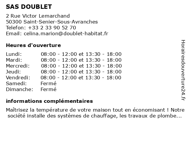 | Mardi | 08:00-12:00 et 13:30-18:00 |
