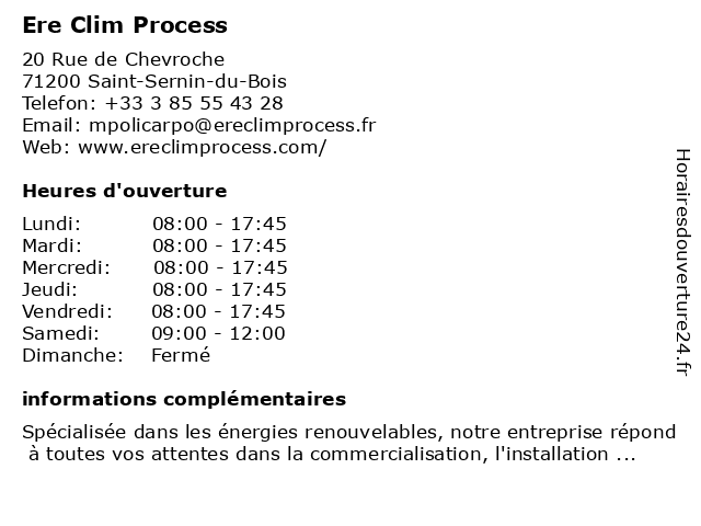 Horaires d'ouverture |