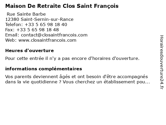 Termes de recherche pour Maison De Retraite Clos Saint François:de, saint, francois, maison, clos, retraite |