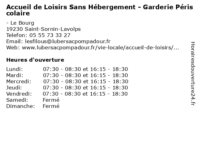 | Mercredi | 07:30-08:30 et 16:15-18:30 |