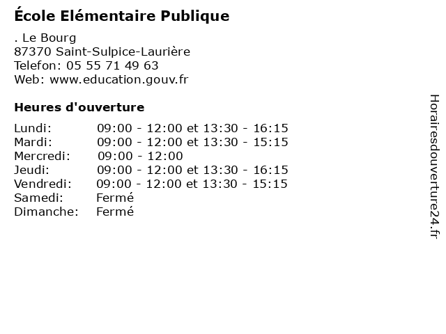 1 École Elémentaire Publique (Distance: 10,23 km) 17 Avenue de Sagnat, 87250 Bessines-sur-Gartempe cours, education, elémentaire, publique, services, École, école, élémentaire 2 École Elémentaire Publique (Distance: 12,15 km) . Rue Jules Ferry, 87240 Ambazac cours, education, elémentaire, publique, services, École, école, élémentaire 3 École Elémentaire Publique (Distance: 19,41 km) 22 Rue Jean Gagnant, 87480 Saint-Priest-Taurion cours, education, elémentaire, publique, services, École, école, élémentaire 4 École Elémentaire Publique - Razès (Distance: 14,42 km) . Le Bourg, 87640 Razès cours, elémentaire, publique, razès, services, école 5 École Elémentaire Publique - Saint-Amand-Magnazeix (Distance: 16,10 km) . Le Bourg, 87290 Saint-Amand-Magnazeix amand, cours, elémentaire, magnazeix, publique, saint, services, école 6 École Elementaire Publique (Distance: 6,19 km) 19 Rue de l'Ecole, 87340 La Jonchère-Saint-Maurice cours, education, elementaire, publique, services, École, école, élémentaire |