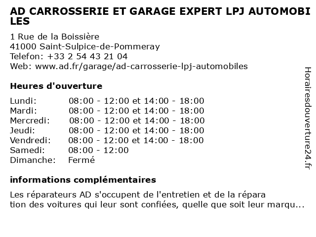 | Lundi | 08:00-12:00 et 14:00-18:00 |