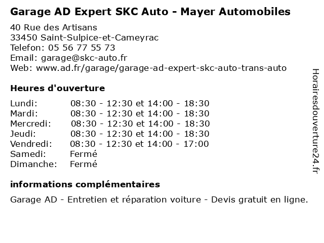 | Lundi | 08:30-12:30 et 14:00-18:30 |