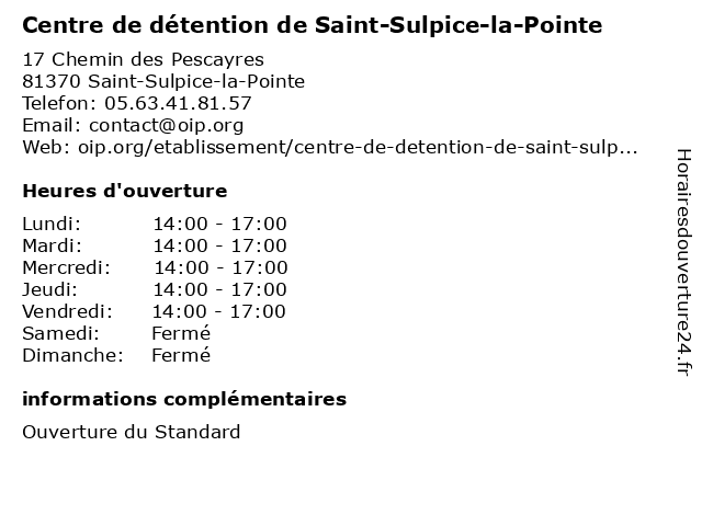 Termes de recherche pour Centre de détention de Saint-Sulpice-la-Pointe:la, de, sulpice, saint, centre, maison, pointe, arrêts, justice, prison, detention, parloirs |
