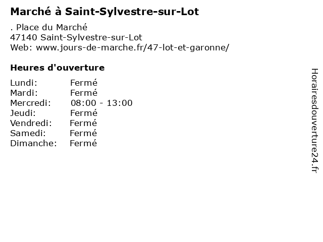 | Mercredi | 08:00-13:00 |