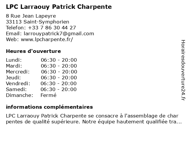 Termes de recherche pour LPC Larraouy Patrick Charpente:patrick, charpente, lpc, larraouy |
