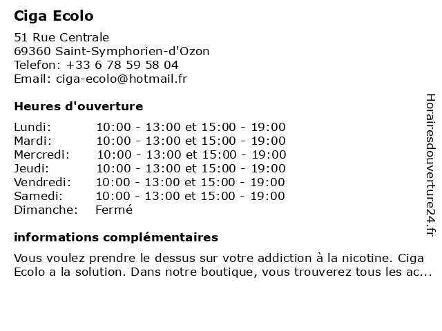Lundi | 10:00-13:00 et 15:00-19:00 |