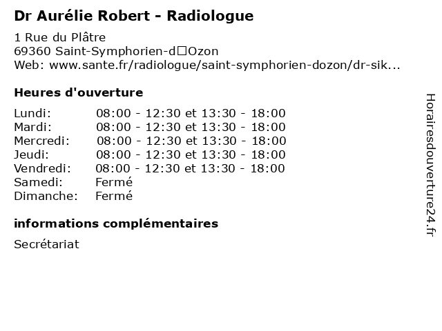 | Mercredi | 08:00-12:30 et 13:30-18:00 |