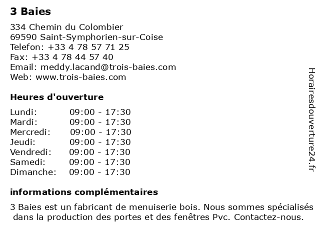 Horaires d'ouverture |