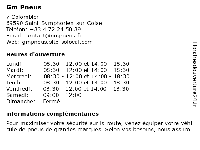 | Lundi | 08:30-12:00 et 14:00-18:30 |