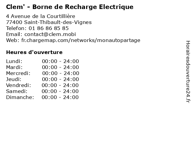 1 Clem' - Borne de Recharge Electrique (Distance: 0,59 km) 1 Place Jean Monnet, 77400 Saint-Thibault-des-Vignes borne, clem', de, electrique, recharge, électrique 2 Clem' - Borne de Recharge Electrique (Distance: 0,76 km) 35 Place de l'eglise, 77400 Saint-Thibault-des-Vignes borne, clem', de, electrique, recharge, électrique 3 Clem' - Borne de Recharge Electrique (Distance: 0,89 km) 81 Avenue du Général Leclerc, 77400 Saint-Thibault-des-Vignes borne, clem', de, electrique, recharge, électrique 4 Clem' - Borne de Recharge Electrique (Distance: 2,24 km) 11 Rue de Guermantes, 77400 Bussy-Saint-Martin borne, clem', de, electrique, recharge, électrique 5 Clem' - Borne de Recharge Electrique (Distance: 2,32 km) - Parc culturel de rentilly, 77420 Bussy-Saint-Martin borne, clem', de, electrique, recharge, électrique 6 Clem' - Borne de Recharge Electrique (Distance: 2,85 km) - Allée Gaston Defferre, 77200 Torcy borne, clem', de, electrique, recharge, électrique |