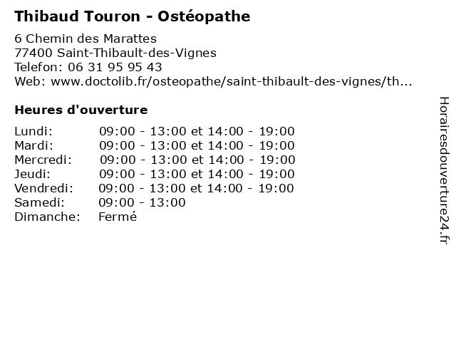 | Jeudi | 09:00-13:00 et 14:00-19:00 |