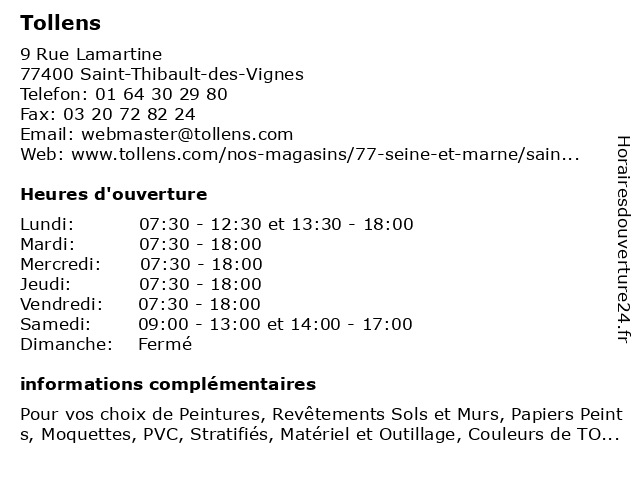 Lundi | 07:30-12:30 et 13:30-18:00 |