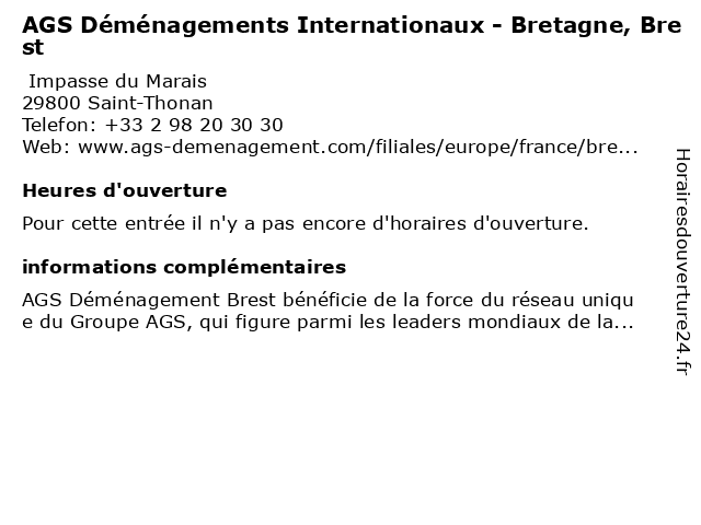 | Appeler AGS Déménagements Internationaux - Bretagne, Brest | |