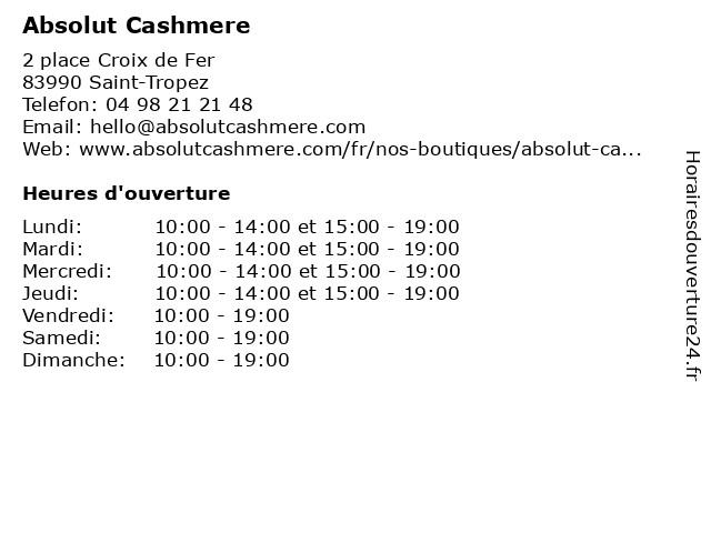 | Mardi | 10:00-14:00 et 15:00-19:00 |
