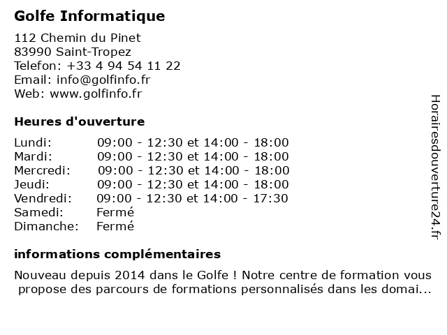 | Lundi | 09:00-12:30 et 14:00-18:00 |