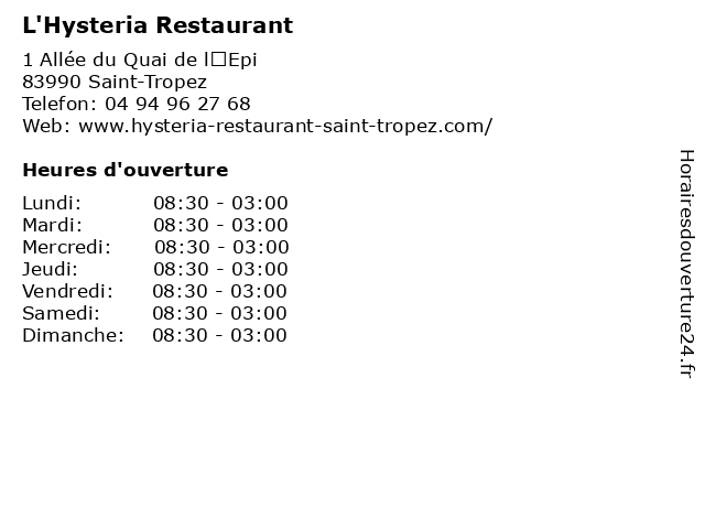 Termes de recherche pour L'Hysteria Restaurant:restauration, restaurant, saint, cuisine, restaurants, les boissons, tropez, l'hysteria |