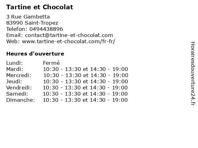 | Samedi | 10:30-13:30 et 14:30-19:00 |