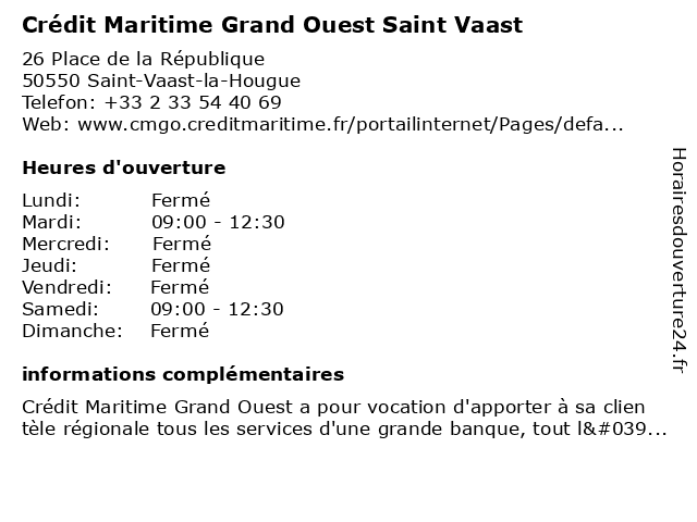 Termes de recherche pour Crédit Maritime Grand Ouest Saint Vaast:saint, grand, maritime, crédit, ouest, vaast |